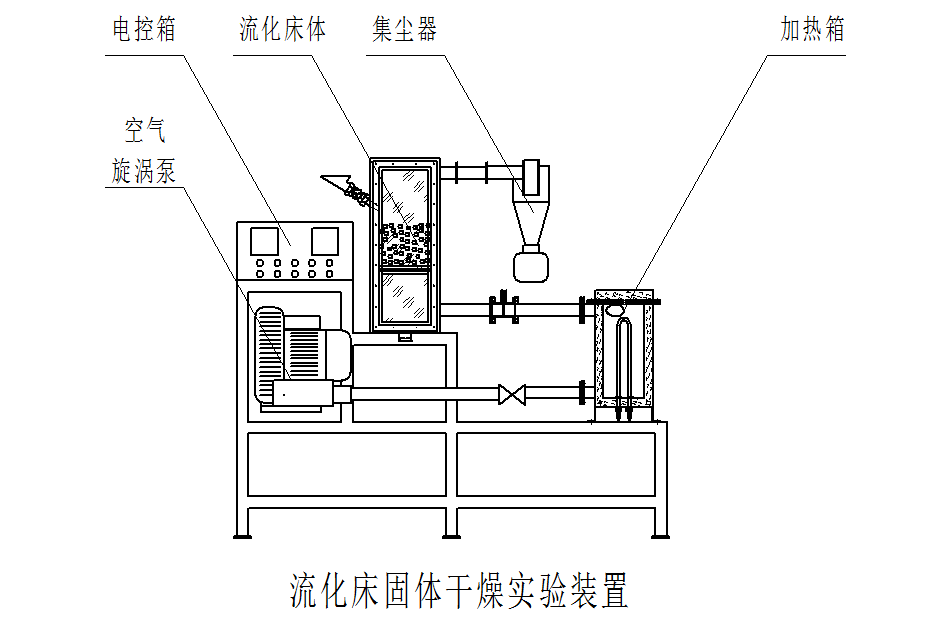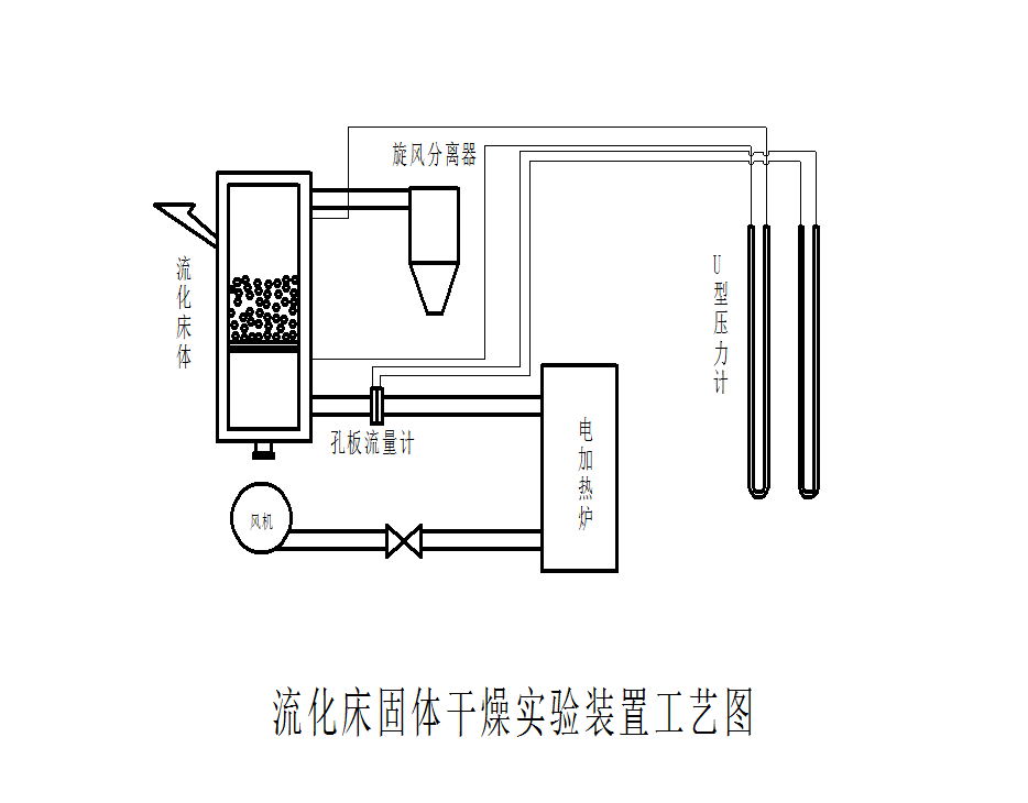 1、该实验装置主要由空气旋涡泵、加热箱、流化床体、集尘器、加料斗、旋风分离、U型压差计(2根)、孔板流量计、电控箱等部件组成。