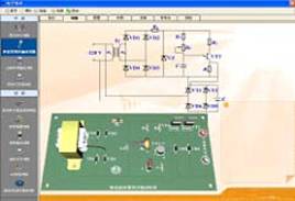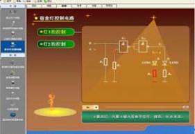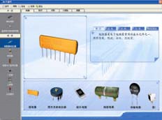 实训设备相应电路的原理图和实物接线图都将反应在这个栏目里。用鼠标点击原理图上相应的元器件符号,真实电路中就会指示对应的器件,并且在提示窗里出现该元件在电路中的作用