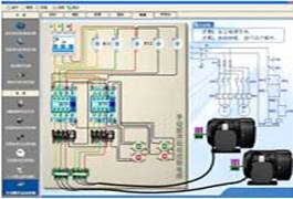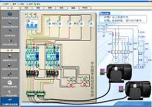 学员可以操作空气开关,按钮等元器件来操控相应项目的电路。界面上的接触器、时间继电器等元器件就可以根据操作控制电机的转动。