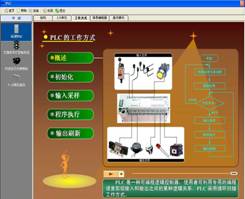利用生动的动画演示,配合语音对电路工作原理进行讲解;可通过半透明的原理图上的提示进行相关操作;具有与设备一致的实训项目和实物元件介绍;具有实训目的的描述、实训器材的展示、典型电路的分析、电路原理声动同步的解说、元件布局模拟操作、电路原理的模拟接线,模拟现场的工业仿真等功能。该软件所有图标及器件均采用3D建模,通过美工处理,整体画面美观大方。通过软件的教学及仿真,能激发学员的思维、增强学员的感性认识,更好地剖析教学的重点、难点。