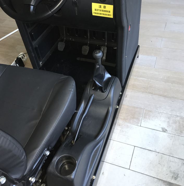 座舱包含了与真实车辆相同的操作部件,“五大”操纵机构:方向盘、离合器,脚刹,油门和手刹。变速器:倒档、一档、二档、三档、四档、五档和空挡(自动档只含前进档、倒车档和驻车档)。真车操作开关:左转向灯、右转向灯、应急灯、喇叭、点火开关、总电开关、安全带、车门、雨刷、远光灯、近光灯、远近光交替。