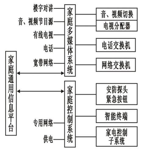 系统控制键盘内部集成了家庭安全控制和报警、电话接口、小区专用网络(ApNnet)接口、操作键盘及语音模块等。